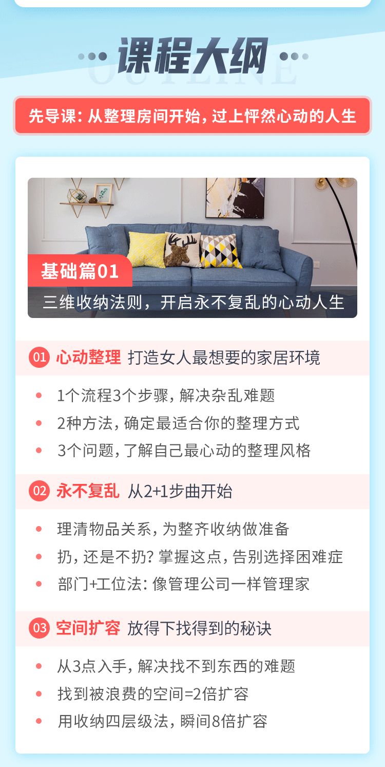 你在宽敞明亮的客厅里,做舒缓的瑜伽; 你每天省下2小时的清扫时间,刷剧泡脚; 你用整理思维理财,越理越有钱; 房子扩容3倍,小家越住越显大......