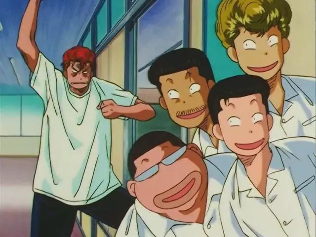 就像记录和嘲笑樱木每一次失恋,但遇到三年级来挑衅的徳男一伙,樱木军团毫无惧色;和不良少年们的体育馆危机更不必说,如果不是应为洋平一伙的主动承担,湘北篮球队说不定早已解散;当三井寿遇到昔日的好友,爱不戴头盔骑摩托的铁男,如果不是因为他们掩护,运动男孩也赶不上比赛了;更不用提水户洋平、大楠雄二、野间忠一郎、高宫望辛辛苦苦在海滩打了整整一个夏天的工,最后赚的钱却被樱木抢去参加全国大赛了。