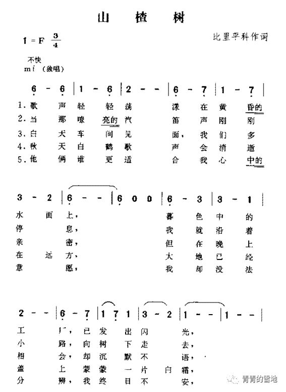 已经很久不听《山楂树》了。很多年之前听《喀秋莎》或者《莫斯科郊外的晚上》,用美声唱民歌的感觉让人恍然一新。山楂树影片刚出来时,很多人写过影评,我不喜欢赶时髦。但喜欢时过境迁后再去回味,辨别好与不好。不至于让自己不小心随了大流。