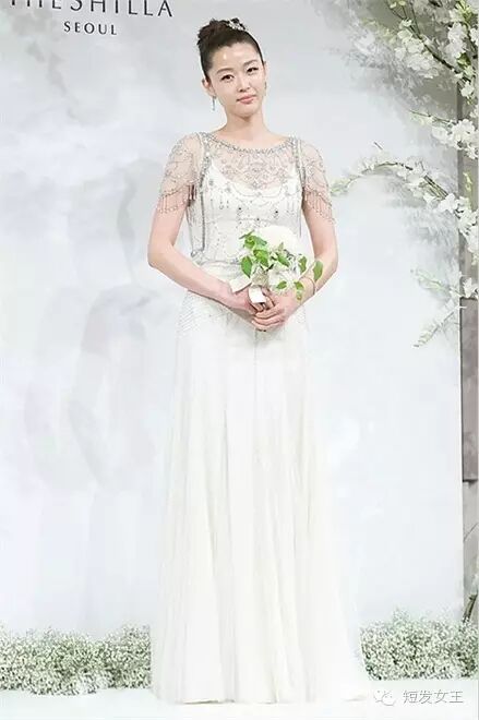 全智贤婚礼前记者会 全智贤在2012年4月13日与高富帅老公在韩国首尔新罗酒店举办婚礼,身穿珍妮·帕克汉 (Jenny Packham) 婚纱的她楚楚动人!