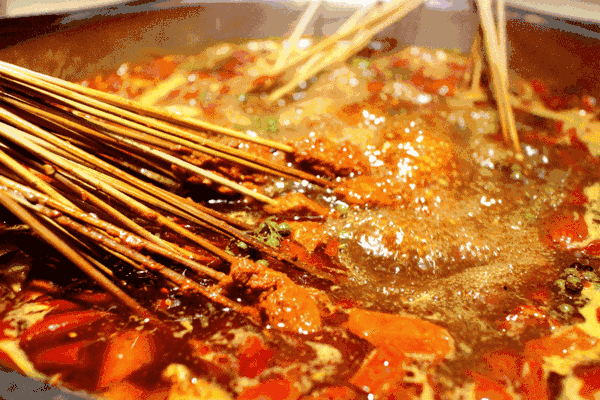 大把大把的竹签牛肉、小郡肝、腰片、结子......