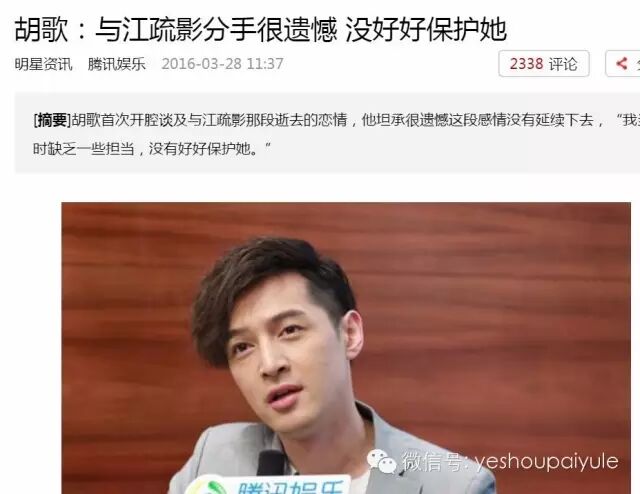江疏影和胡歌的分手则更具戏剧性,在恋情曝光后,各种无间剧情横生,指责和猜疑淹没了爱情,换做谁也受不了过这山车式的感情,所以她和胡歌的这一段很快走到了尽头,至今两人为什么分手还充满谜团,不过今天胡歌的表态,则意在说明当初江疏影无错。