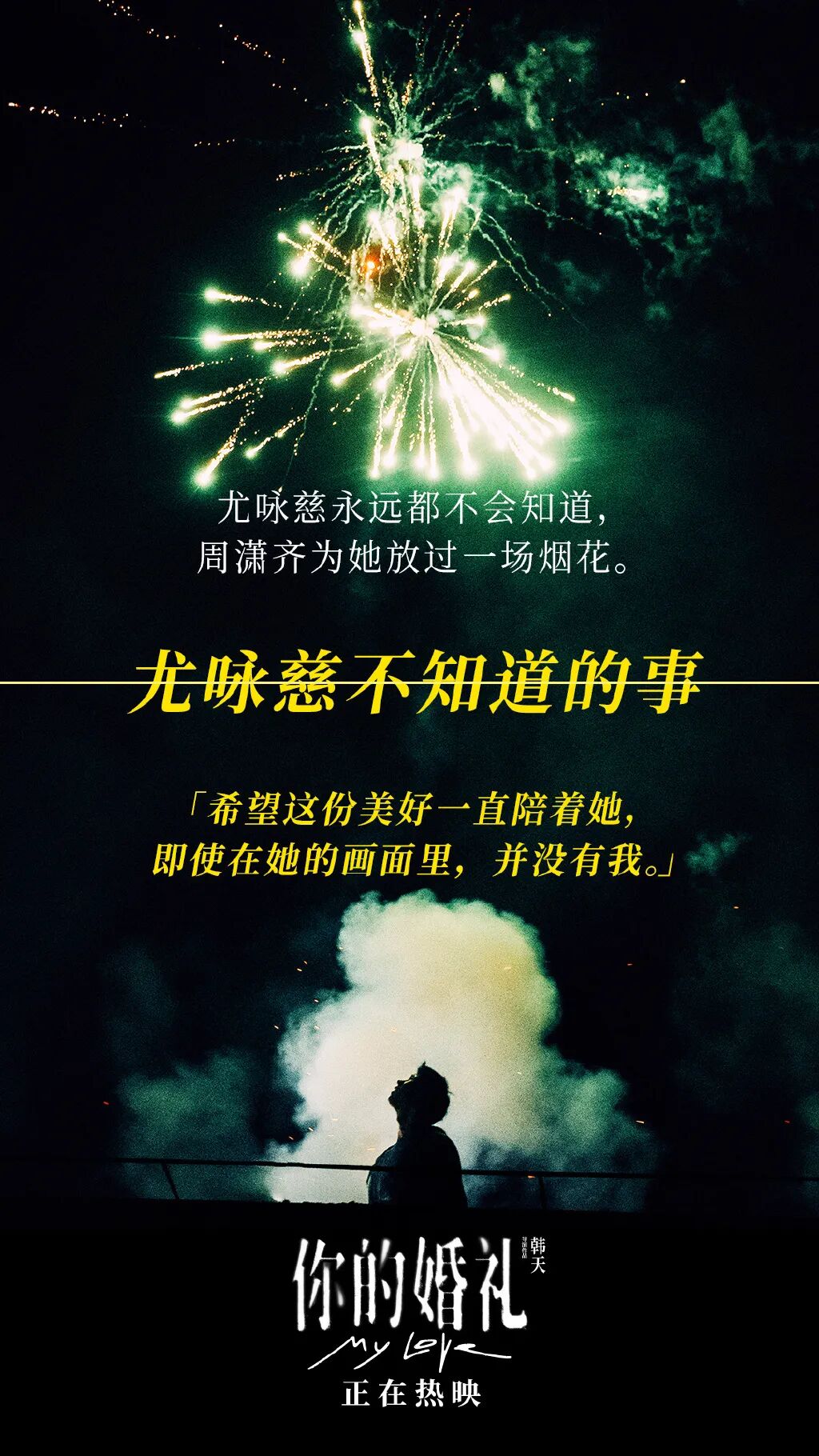 影片里有一场为所有人津津乐道的名场面:放烟花。这几乎是周潇齐将浪漫和痴情发挥到极致缔造出的动人时刻,在尤咏慈生日当天满足她看烟花的心愿,还顺手造了一场校园大告白的势。戏外,“热心群众”们纷纷跑来,把周潇齐的这场壮举剖白给尤咏慈看“尤咏慈永远不知道,周潇齐为她放了一场烟花。”一时间成了这个五月最大的意难平。
