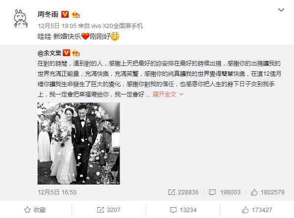 对的时间遇上对的人。一时间,婚讯的消息炸开了锅,有的祝福,有的难过,有的或许还在感叹着陪自己走了很多年的春娇和志明,而,大多数的,都在等待着周冬雨的回应。