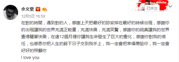 很多人都很羡慕余文乐,一直寻寻觅觅,最后终于在合适的时间,遇到了合适的爱情,然后就稳定了下来。
