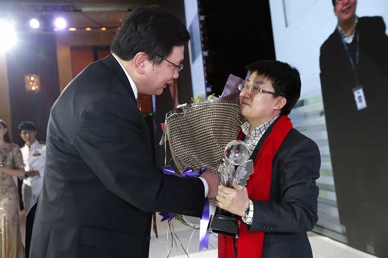 △宜信创始人、CEO唐宁授予夏颖“宜信之星”奖杯