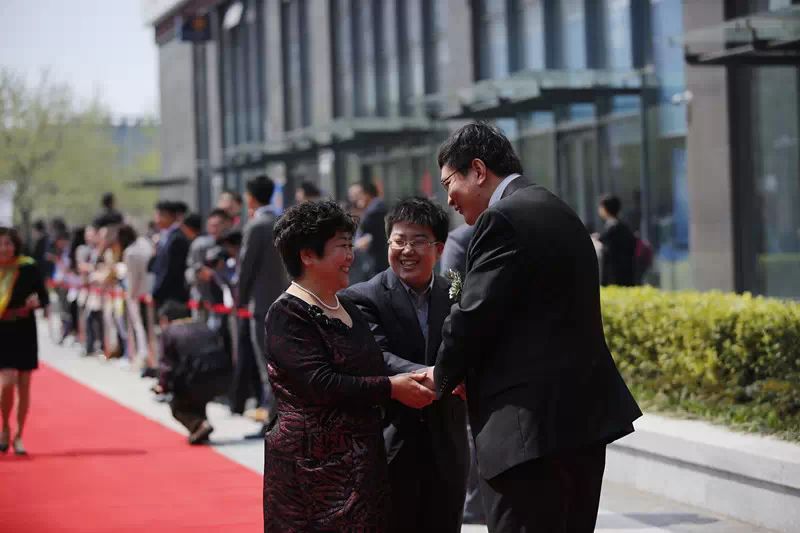 △青岛宜信财富空间开幕典礼上,夏颖受邀与母亲走红毯