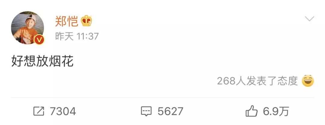 晚上22:24,郑恺发微博表示已经达成心愿,安全燃放烟花。