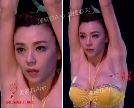 (周韦彤曾经被拍到腋窝下有疤痕,疑似做了假体隆胸。也只有假体隆胸才需要做切口,自体脂肪丰胸都是用注射器注射,不会留下任何疤痕或者切口。)