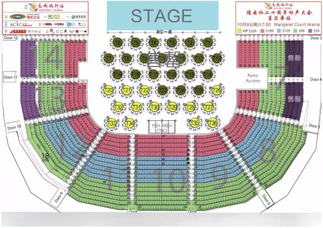 ACIC Melbourne作为德云社二十周年相声大会墨尔本站唯一指定留学移民机构,可进行演出售票业务。具体价格请参照上方图示中的座位图价位表查看。