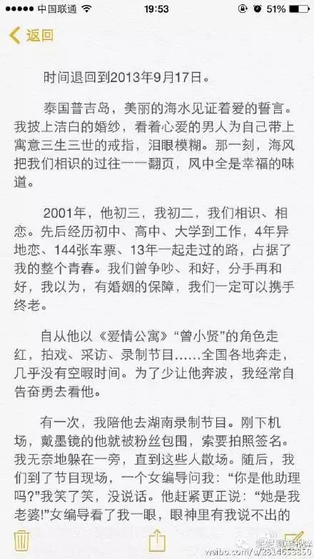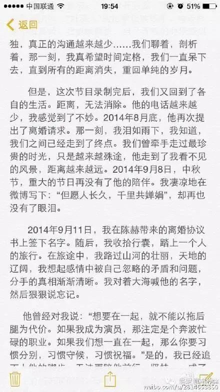 这篇长文,从两人相识到结婚,又从结婚到婚后生活,再到两人决定离婚,写得那叫一个情真意切,许婧从此获得了“中国好前妻”的美名。