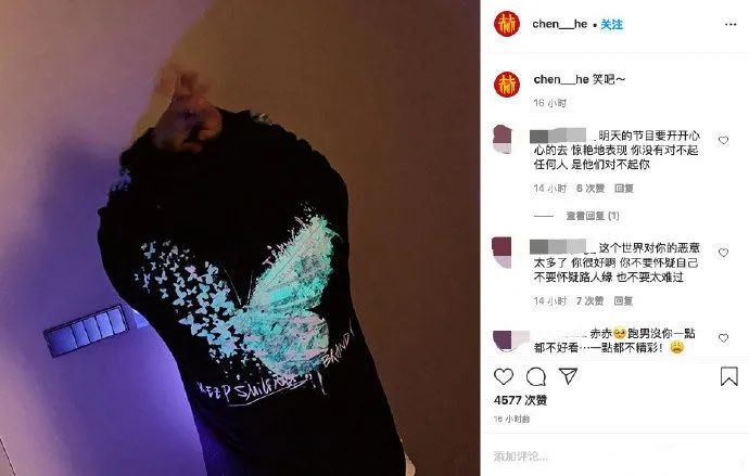 虽然大家都在抵制陈赫,但是陈赫根本不放在心上,在社交网站上发了一张双手抱头的自拍,配文“笑吧”,然后就开开心心的去上节目了。