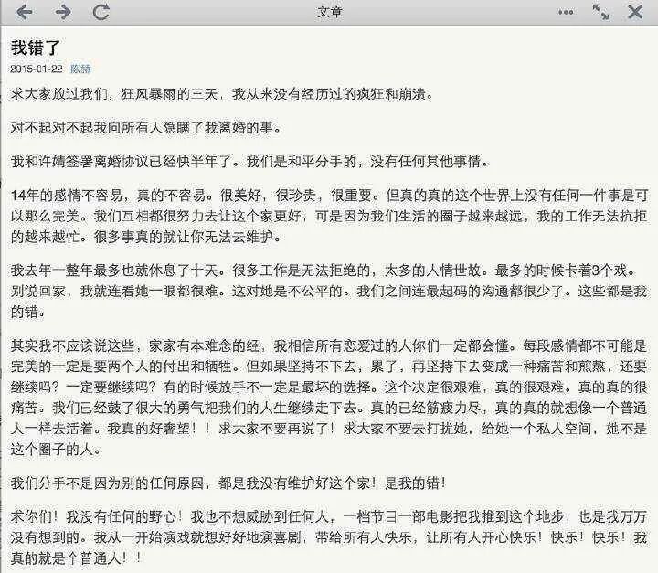 就在陈赫的口碑摇摇欲坠的时候,许婧突然出来发了一篇千字长文。