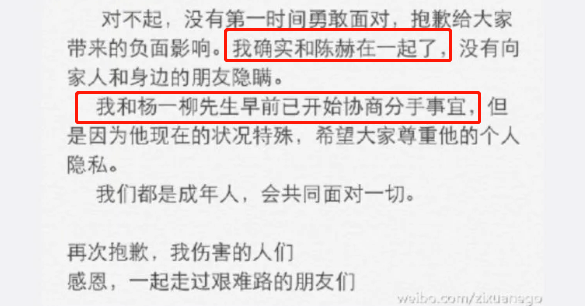 眼看着纸已经包不住火了,出轨对象张子萱马上站出来发微博承认,自己确实已经和陈赫在一起了,并且早已经在和前夫杨一柳协商离婚的事情了。