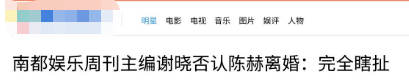 《南都周刊》马上出来力挺陈赫,说“完全瞎扯”。