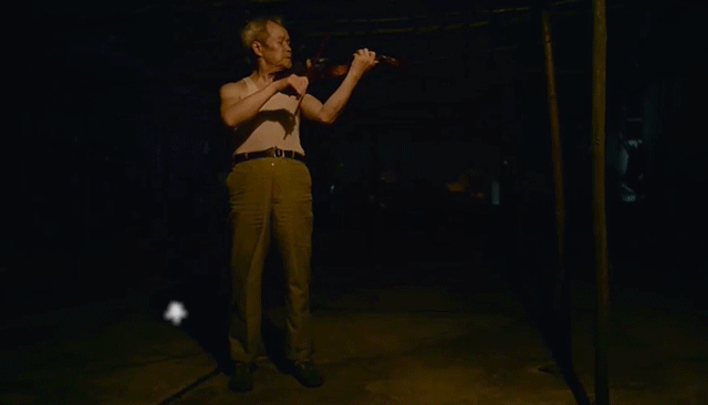 我爸从废墟里翻出他的小提琴,背板已经快烧成了炭,他吹了吹灰,叹了口气,下楼去了。我继续在房间里东翻西翻。过了一会,突然听到沙沙的琴声,我跑出来,站在二楼的走廊里往下看,我爸在天井的井台上拉小提琴。