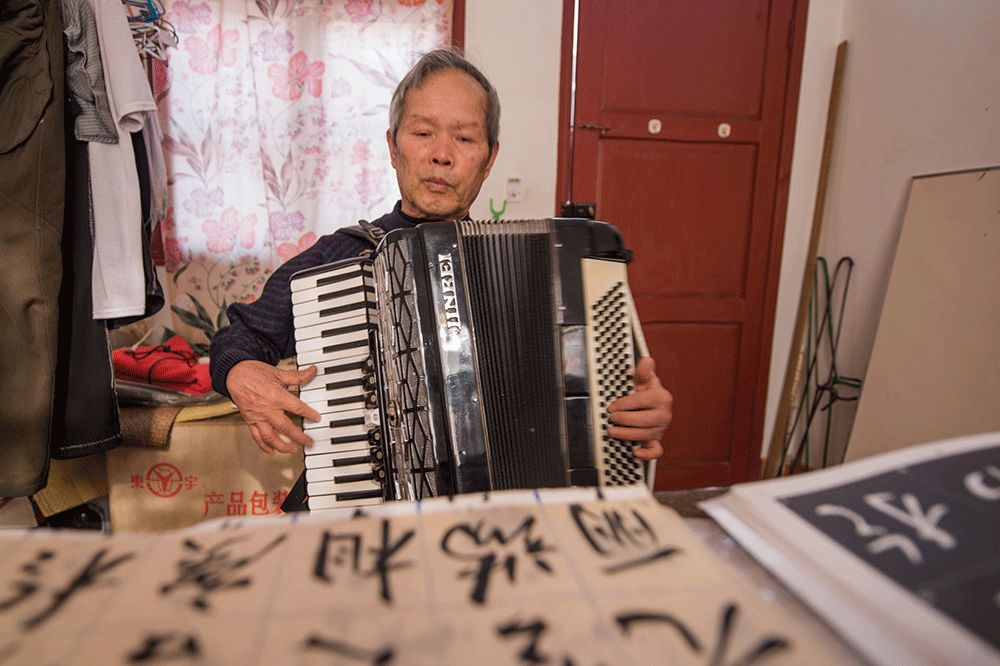 爸爸退休前是物理老师,却精通二十多种乐器:大胡、长笛、电子琴、锯琴、小提琴……