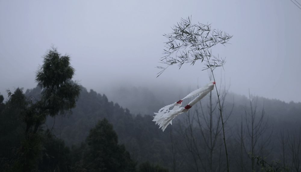 白发人送黑发人,可葬礼上并没有撕心裂肺的嚎哭,只有两个看似无关的老人,一句句地唱着丧歌,有些哀婉,有些空灵。