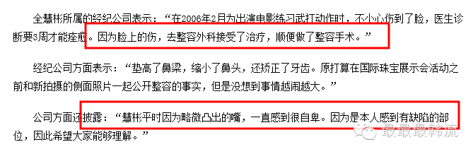 2006年,全慧彬在拍摄《我生命中最糟糕的男人》时脸部受伤,为了继续在娱乐圈活动,姑娘接受了整容手术↓