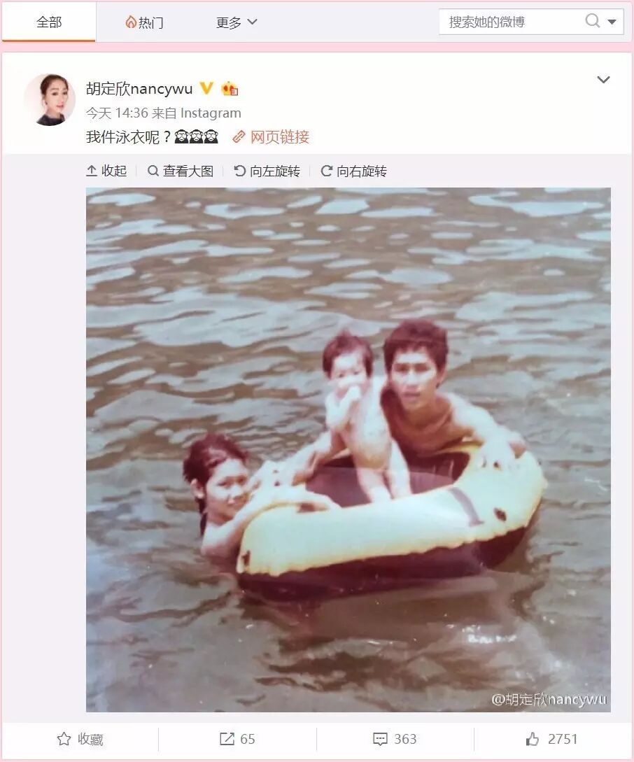 话说艺人大方秀出自己儿时的照片本是很正常的事,此前也有不少艺人自爆小时候照片呢,但胡定欣上载的这张照片,问题在于,竟然是真空上阵的,泳衣呢?看到这图网友们也欢乐了,留言称少儿不宜,尺度太大,也纷纷赞其老爸系靓仔!
