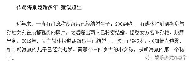 虽然胡海泉还是没承认,但基本上大家已经默认他是隐婚生子了。