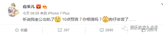 今天上午应采儿在微博上主动替老公澄清,还调侃“狗仔辛苦了”,简直可爱。