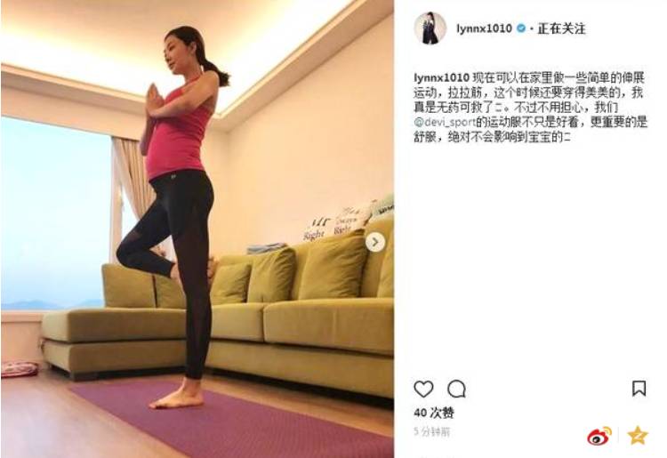 再次看到熊黛林怀孕的消息时,她的孕肚已经很明显了,而这一次,她晒出了美美的瑜伽照:粉红吊带紧身衣,虽然小腹微凸,但四肢修长无赘肉,依旧是美又仙。