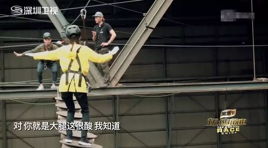 丽坤在丹麦胆战心惊走50米高空独木桥,小综就在对面一招一式地给她示范,鼓励她,完成之后还陪她一起放飞自我~