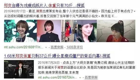 郑爽也曾因为暴瘦频频上热搜,据说还因为减肥得了厌食症,一度瘦成纸片人。