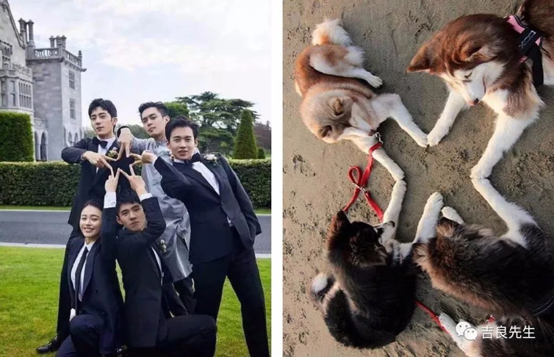 一伙人一起拍的照片,也是被网友发现了“借鉴”的原图,居然是……狗狗们的照片?