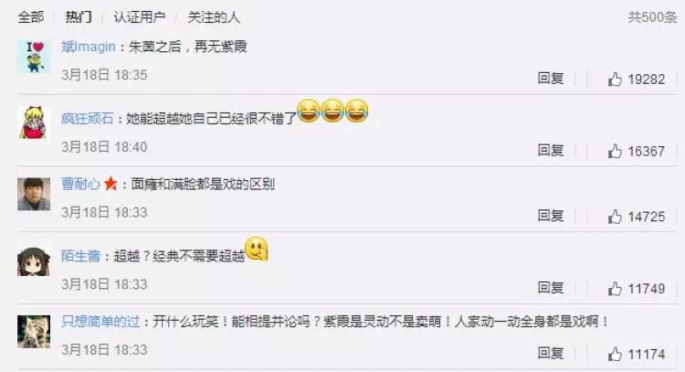 即使服装、造型极其靠拢朱茵版紫霞,但还是遭到了强烈抵制。在微博上有人问唐嫣能否超越朱茵,最热门的评论是:朱茵之后,再无紫霞。