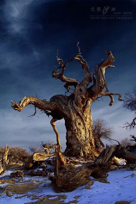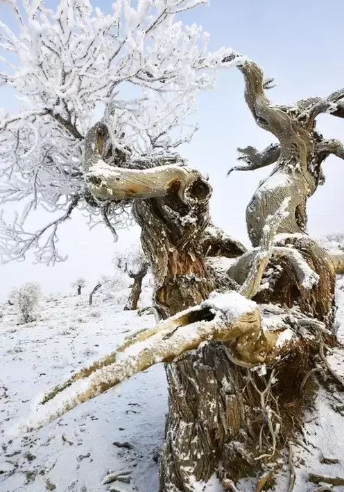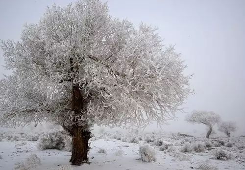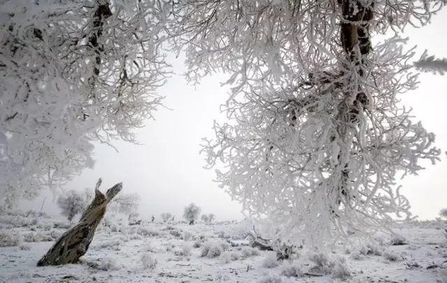 然而深秋的胡杨林褪去了秋日傲人的金黄,安静的白色依然续写了往日的庄严,而这何尝不是上帝的完美造物..