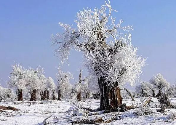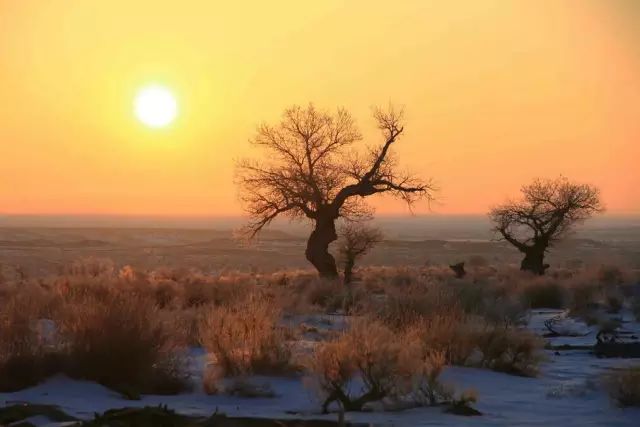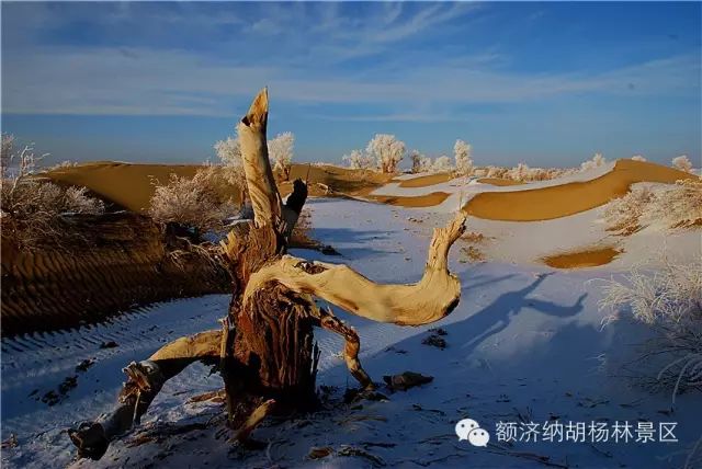 内蒙古的冬季展现出独特的美丽,有胡杨林38万亩,是全球仅存的三大胡杨林区之一,另两处是北非的撒哈拉沙漠和新疆塔里木盆地的塔克拉玛干沙漠。