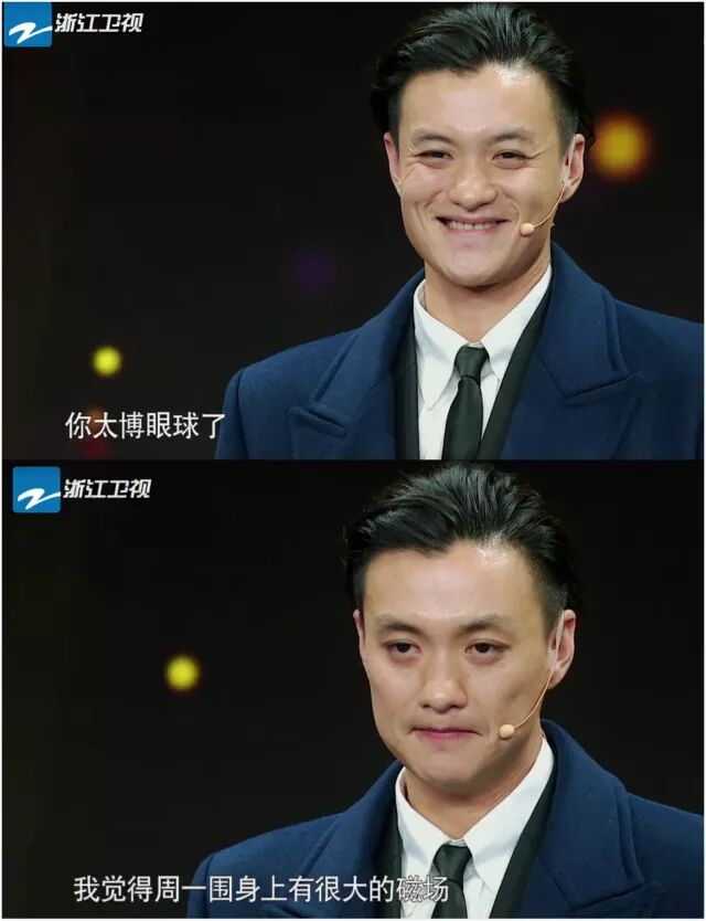 章子怡说他身上有很大的磁场,宋丹丹说他太博眼球,一进入表演模式,周一围就是最高调、最夺目的那一个。