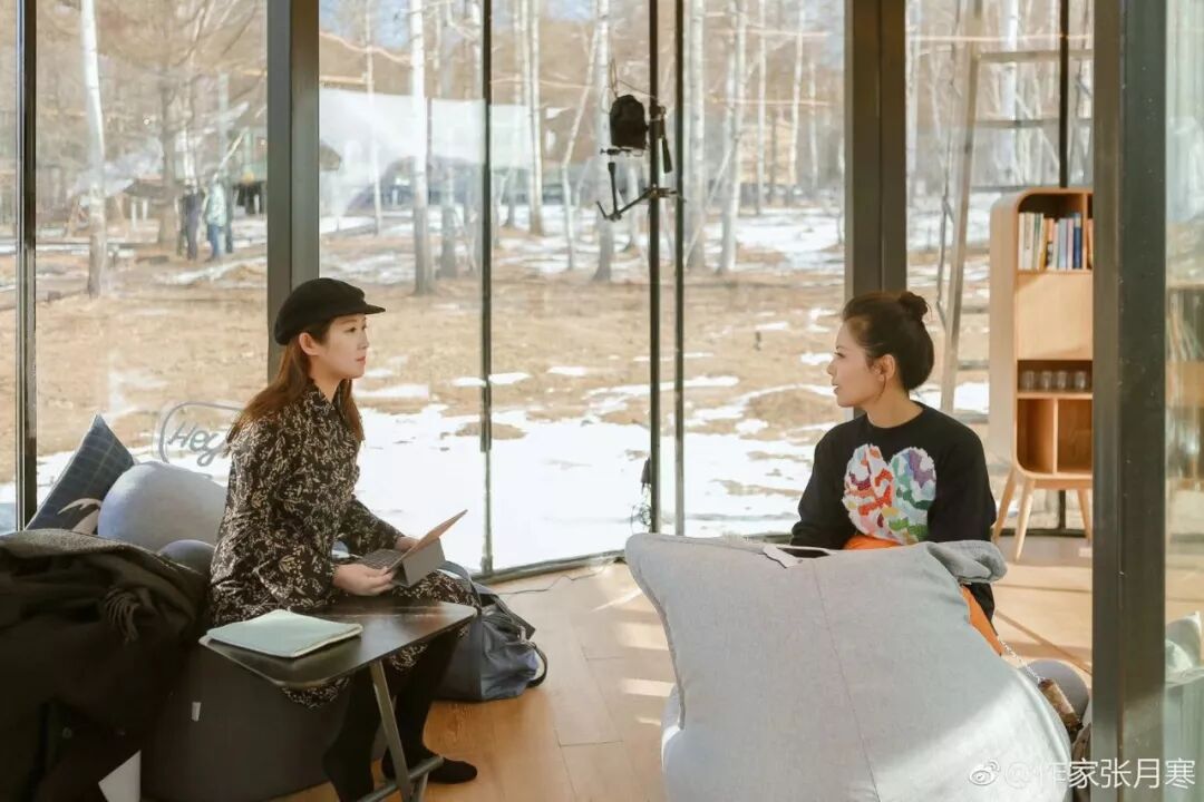 第二季的拍摄地点选在内蒙古白狼镇一处白桦林间的空地,早晚的风夹杂着东北地区的寒意,远方是肃杀的大兴安岭。我们那天的采访在节目中命名为“充电堡”的一处玻璃屋里进行。刘涛穿着宽松舒适的衣服,我进去时,王珂正在为她按摩肩部。她说这是她第一次在中国很北的地方待这么长时间,作为一个南方人,感到新奇。