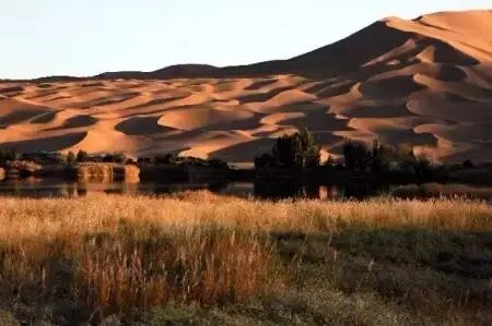它有黄沙连绵不断,亦有湖泊星星点点;