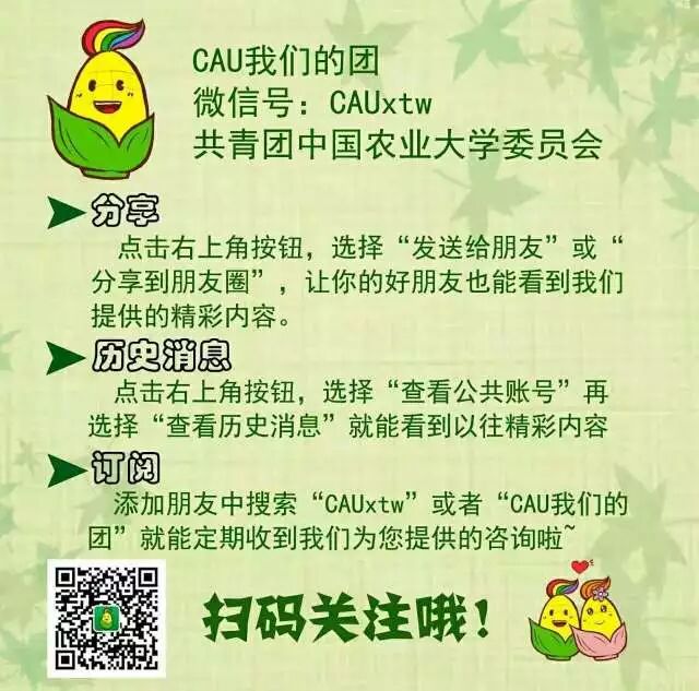 小天使们喜欢今天的推送嘛?求赞求评论(开心脸)棒棒也是需要大家夸奖哒~如果大家有什么新鲜的idea,欢迎发送邮件至cauxtwwxpt @163.com。如果你对校团委宣传部和网络文化发展中心感兴趣的话,我们欢迎你的加入!