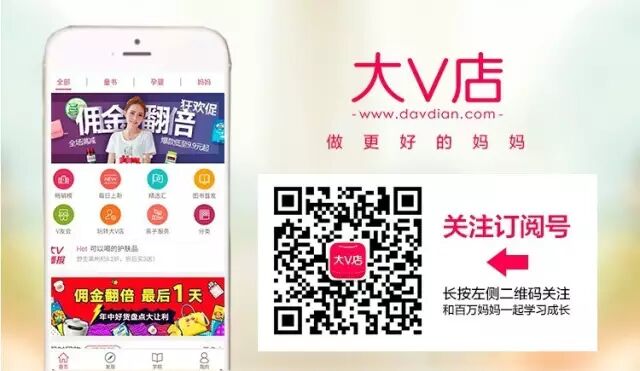 长按下图关注【大V店】,和百万妈妈一起学习成长