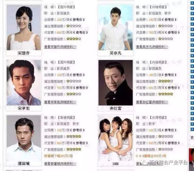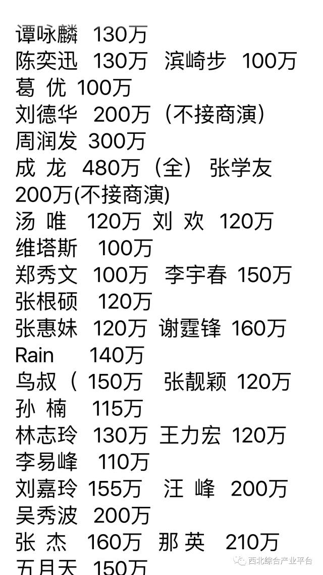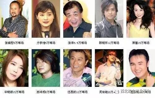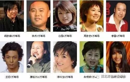 董 洁 30万 冯 巩 35万 蔡健雅 38万