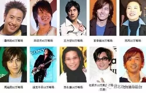 蔡 妍 28万 动力火车 40万 乐队 50万