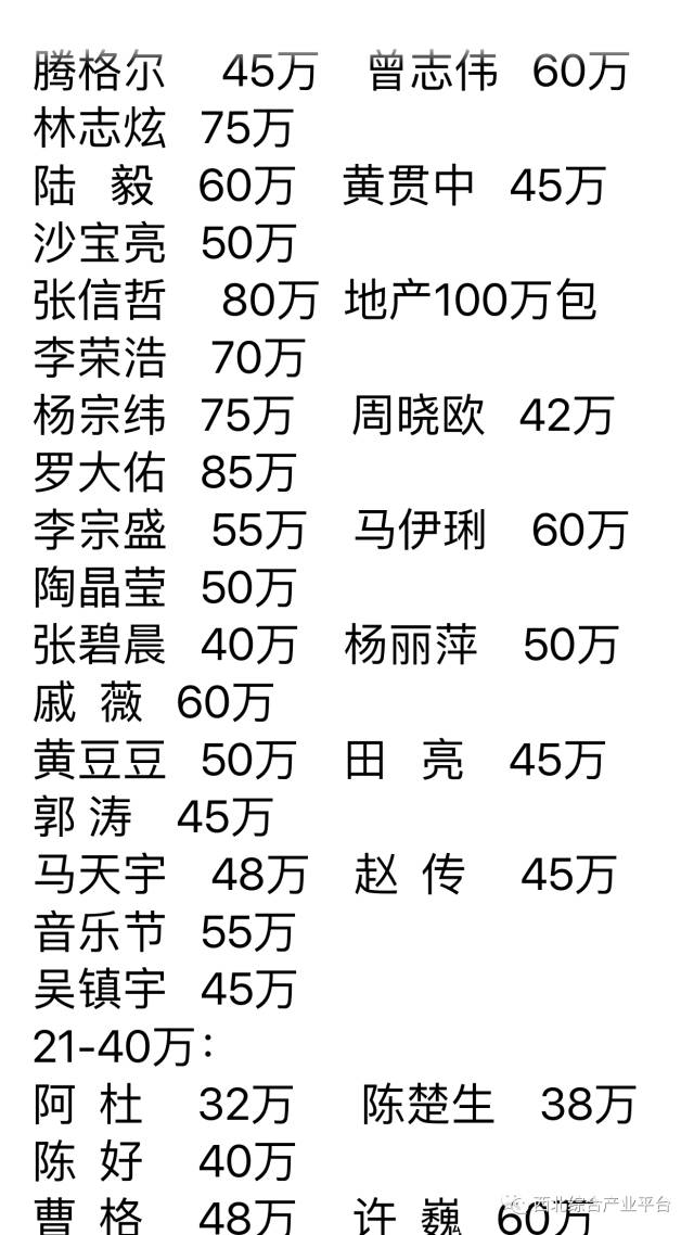 李圣杰 25万 阿 牛 30万 黄小琥 30万