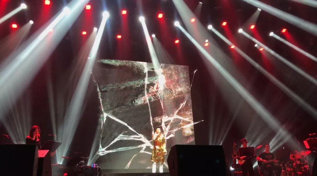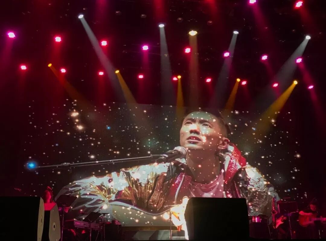 舞台中间,他穿着太空衣,清唱了前奏。
