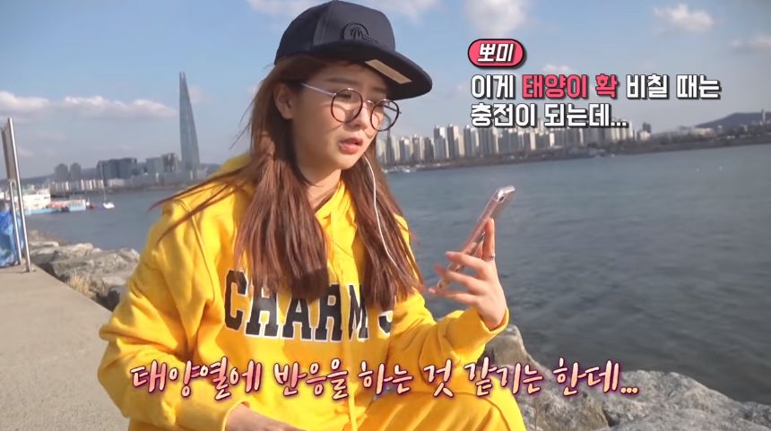 为了验证新出的黑科技——太阳能发电帽是不是真的可以给手机充电,尹普美亲自跑到了汉江边上,一本正经地做起了沙雕实验。