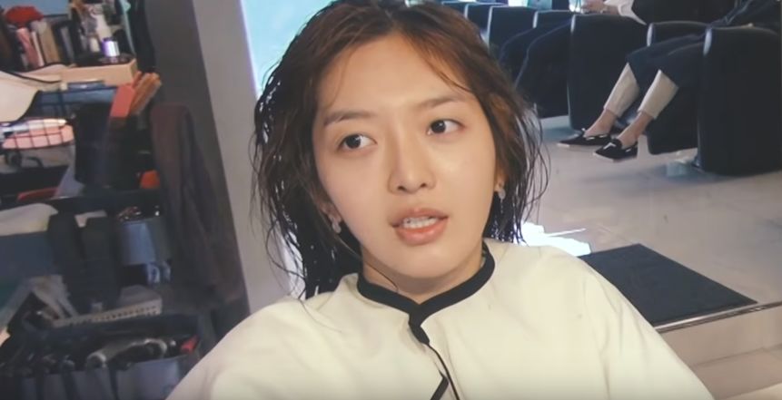 接着是在美容室中做头发和化妆的过程。她还顺便公开了素颜,还是非常清纯的。