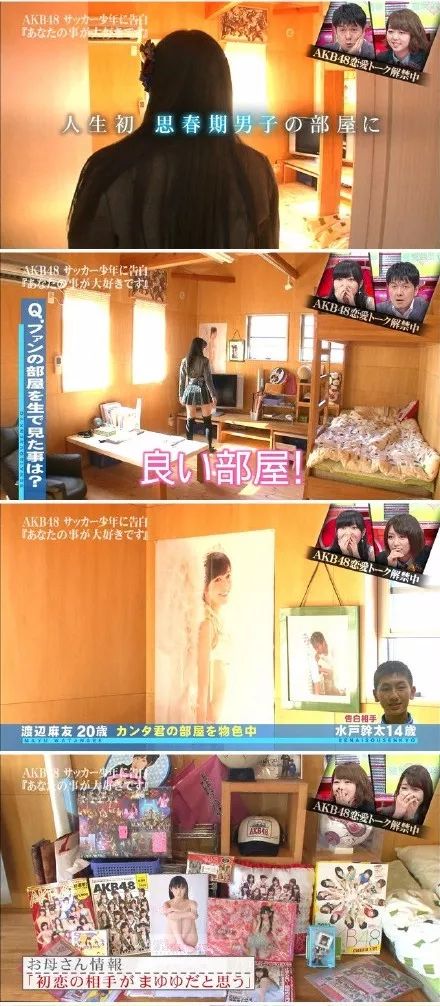 在节目中,渡边麻友先是去了水户幹太家里,走进了这位足球少年的房间。