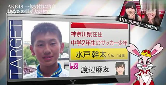 2014年9月,在日本神奈川县就读初中2年级的一位足球少年成为了幸运儿,这位名叫水户幹太的少年是AKB48成员渡边麻友的粉丝,在节目中,他得以与渡边麻友相见。