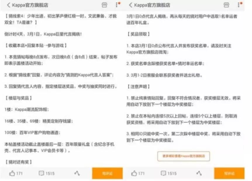 在参与活动方式方面,先收藏本店,然后回复帖子即可。从前期的前100楼内指定楼层盖楼有礼,到后面广大粉丝根据线索提示,积极主动参与回复。