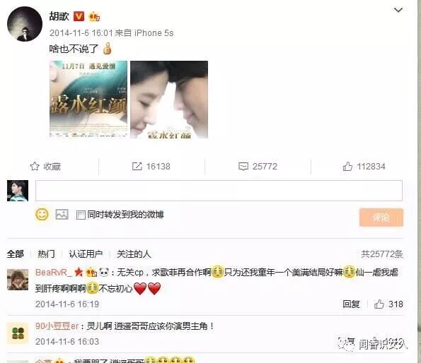 之前胡歌还在微博替刘亦菲新拍的电视剧做宣传,还亲自在微博转发了!大家网友们也纷纷在胡歌底下评论还想看到当年她们这对CP可以继续合作拍电影!