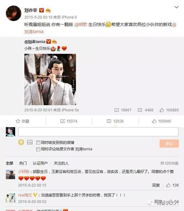 之前胡歌生日的时候刘亦菲还专程在微博转发刘涛姐的也发与祝福,打破两人不和的传言!看来那个时候大家就已经有互动了,不过那时候刘亦菲还是宋承宪的!胡歌和刘亦菲那时候还是没怎么联系,但是起码微博之间还是有互动的