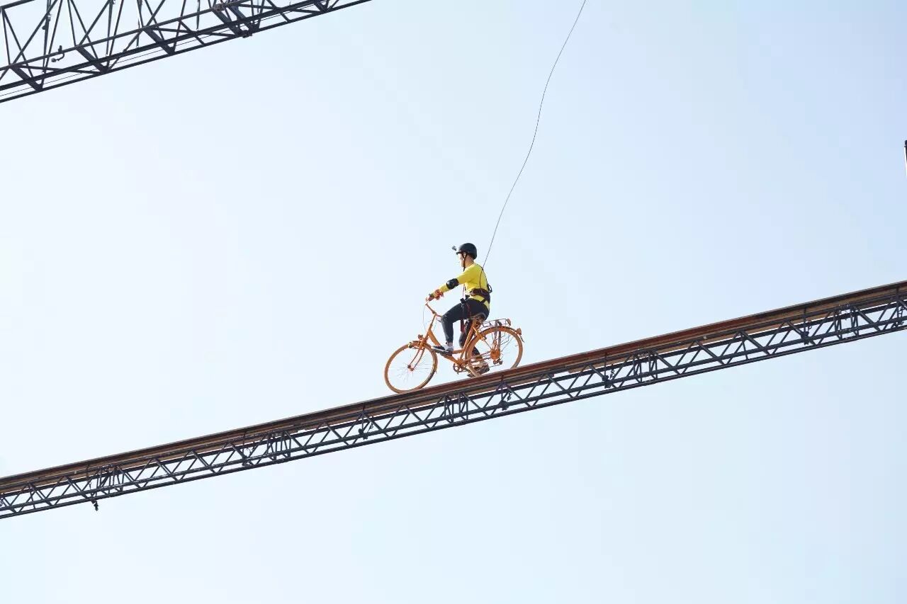 好不容易踢完鞋,下一关就是高空骑自行车,又是个把人逼疯的项目 ▼▼▼